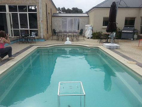 Morgan's Impermanent Vessels took place at the artist's studio/residence in Batesford a few hundreds meters from Dog Rocks. The theme of the transformation of the cast of the artist's head was transition of matter from ice to water. The ice head slowly melted in a sunlight reflecting swimming pool, accompanied by the transition of the sun from daylight to the night darkness. Three cameras surrounded the ice sculptures, to record a time-lapse sequence of light-matter transition. Two other ice sculptures from the same mold were part of the Melbourne COP21 event held at Arts House two days earlier.